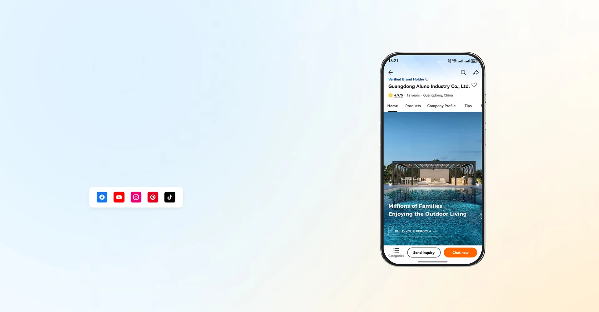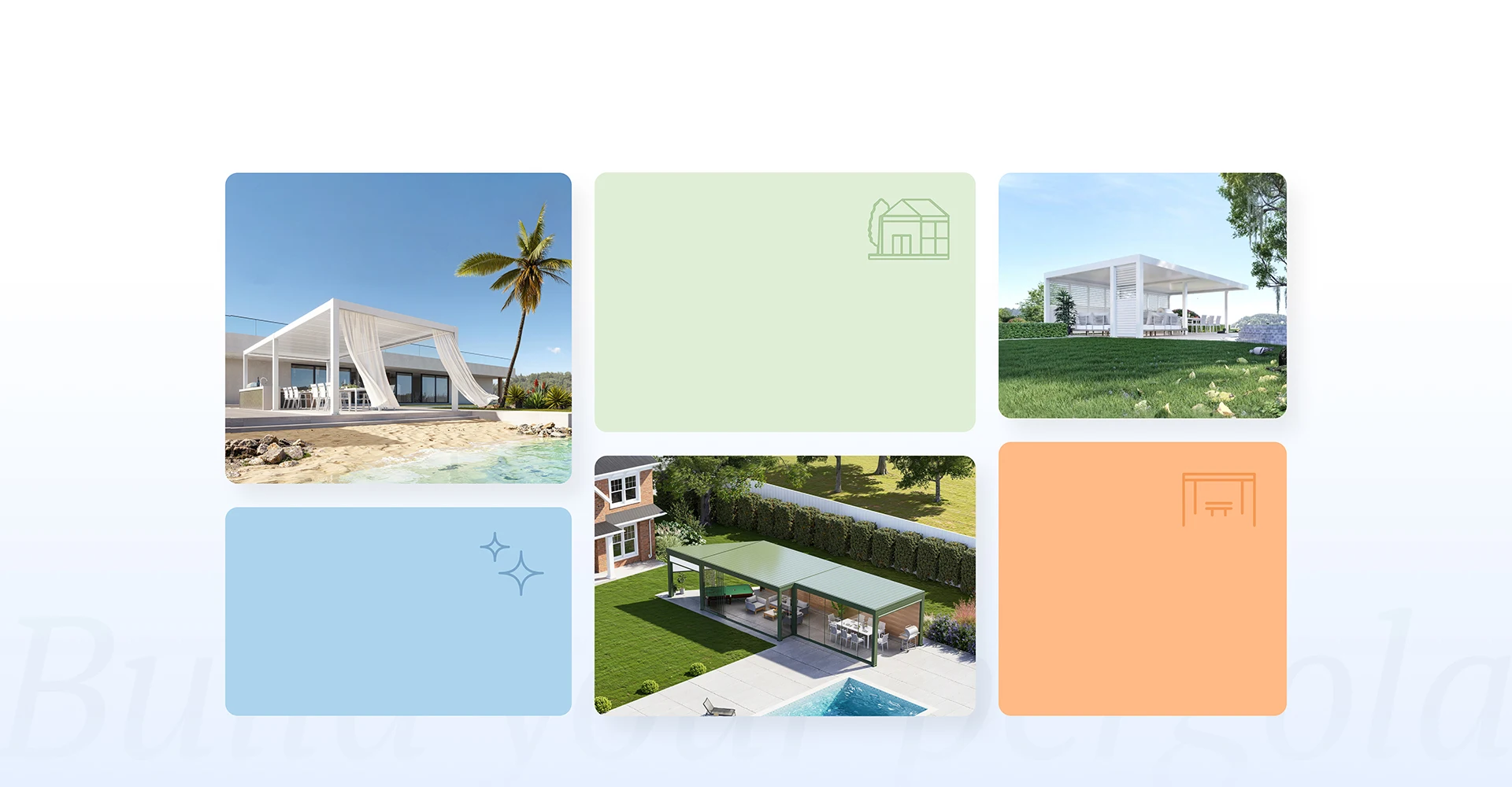 Produk utama: Pergola, atap dapat ditarik, tirai ritsleting, bingkai Louver, jendela dan pintu